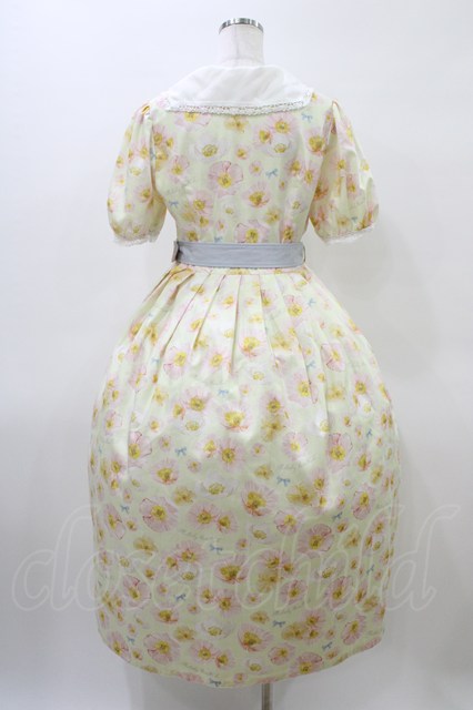 Melody BasKet / Blooming poppyフロントボタンワンピース M イエロー H-26-04-02-1017-LO-OP-KB-ZH