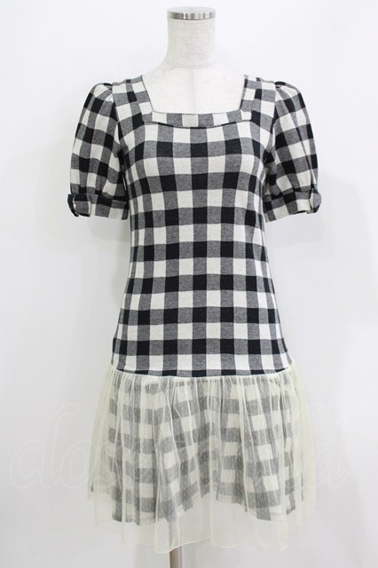 Emily Temple cute / 裾チュールギンガムワンピース ブラック H-26-03-30-049-ET-OP-KB-ZH