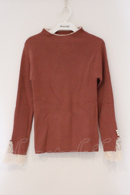 axes femme / 吸湿発熱袖レースニットプルオーバー F ピンクベージュ O-26-03-29-038-AX-TO-YM-OS