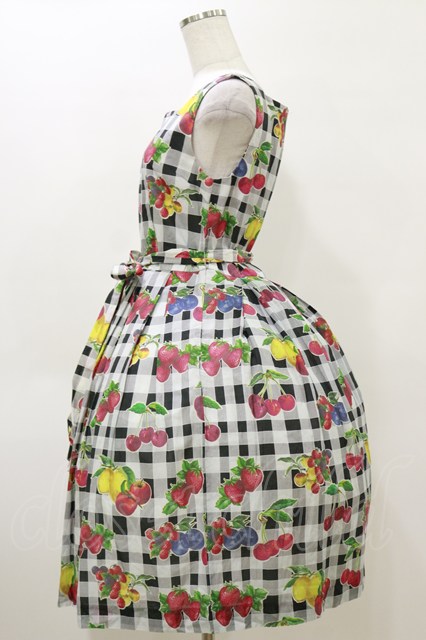Jane Marple / フルーツピクニックスクエアドレス M 黒 H-26-04-04-065-JM-OP-KB-ZH