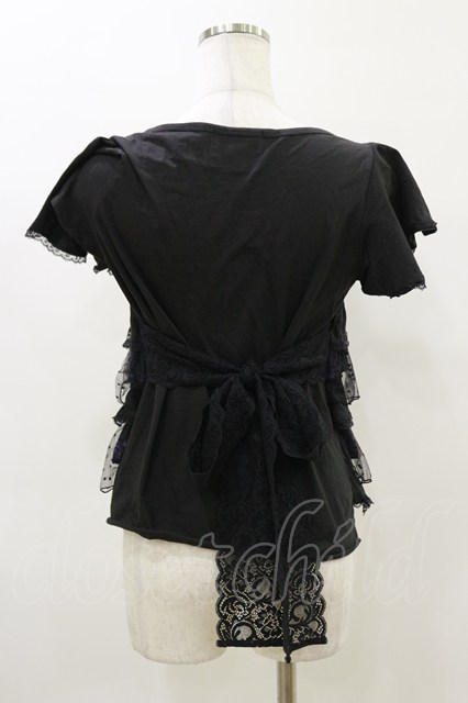 HANGRY&ANGRY / プリントフリルトップス 黒 H-26-04-04-017-HN-TO-AK-ZH