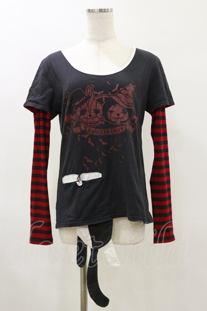 HANGRY&ANGRY / プリントレイヤード風カットソー 黒×赤 H-26-04-04-026-HN-TO-AK-ZH