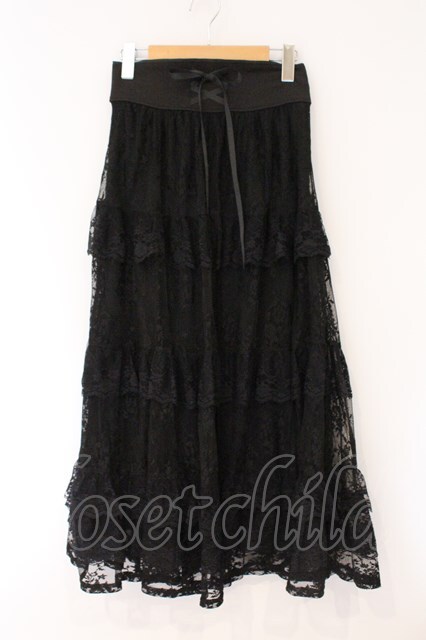 axes femme / 編上レースティアードスカート F クロ O-26-03-31-058-AX-SK-OW-OS