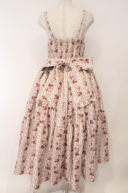 axes femme kawaii / ストライプローズ柄ジャンスカ M ピンク O-26-03-31-025-AX-OP-OW-OS