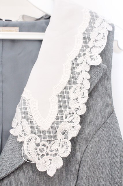 axes femme POETIQUE / レース襟ロングベスト M グレー O-26-03-31-1012-AX-TO-IG-OS
