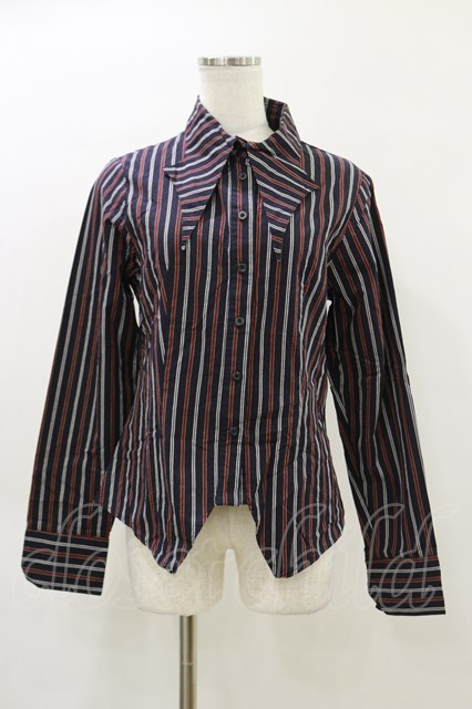 PEACE NOW / 蝙蝠襟ストライプシャツ M 紺×赤 H-26-04-05-015-PU-BL-AK-ZH