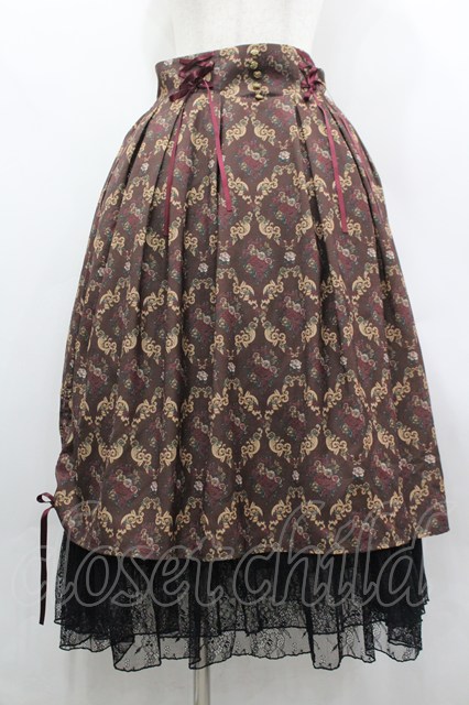 axes femme / ブロッサム柄ドロストスカート F ブラウン I-26-03-30-070-AX-SK-TE-ZI