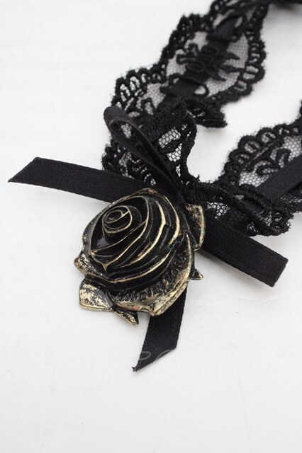 Moi-meme-Moitie / ローズロゴチャームレースチョーカー ブラック O-26-04-01-022-MO-AC-IG-OS