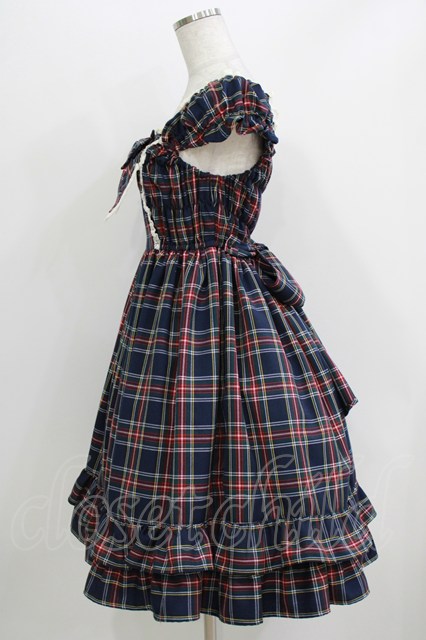 BABY,THE STARS SHINE BRIGHT / タータンチェックカチューシャ&リボンミニ袖ジャンパースカートセット Free ネイビー H-26-04-07-014-BA-OP-NS-ZH