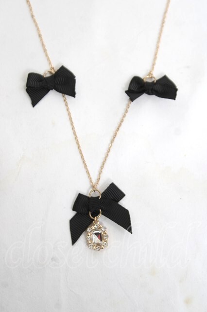 m petit by misako / AMリボンビジューネックレス 中黒 Y-26-04-05-012-LO-AC-SZ-ZY