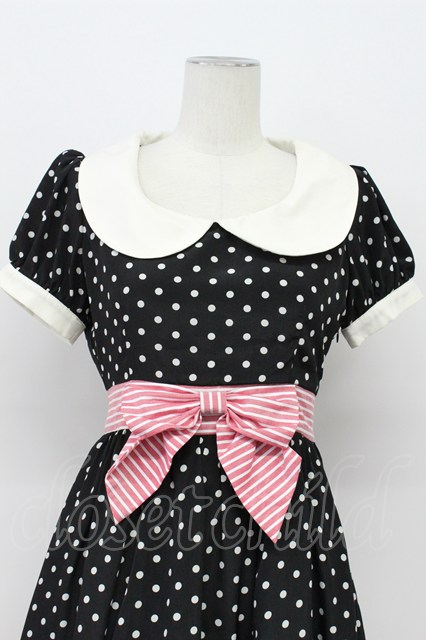 Ank Rouge / 水玉&ストライプワンピース M ブラック T-26-04-03-022-CA-OP-SA-ZT [戻る]