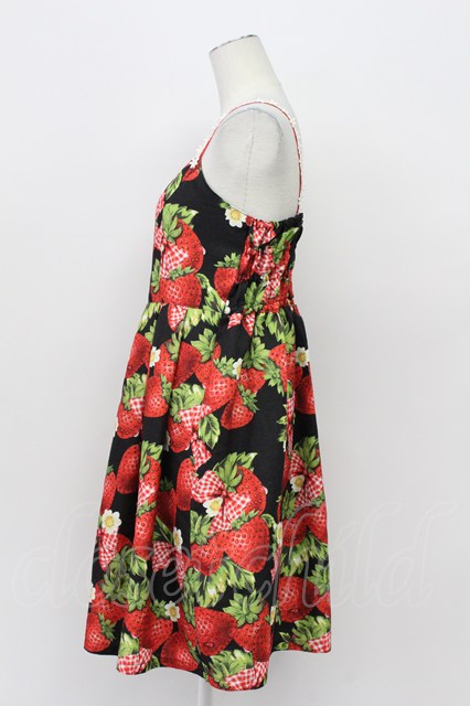 Emily Temple cute / Contrast ストロベリーノースリーブワンピース 黒X赤 T-26-04-03-024-ET-OP-SA-ZT