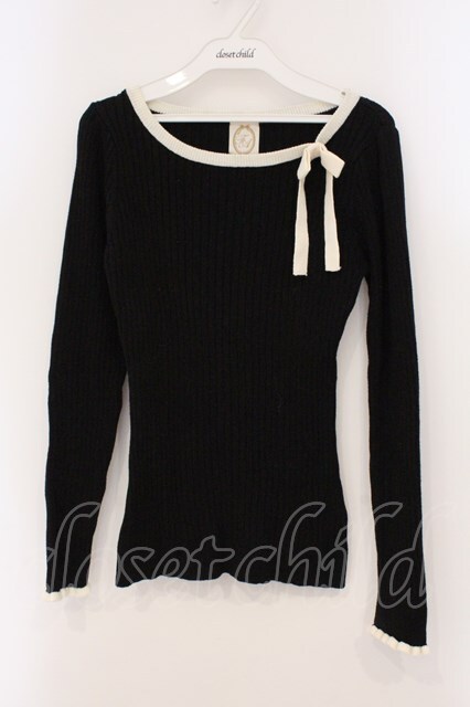 F&A / 配色サイドリボンリブニットプルオーバー クロ×オフシロ O-26-04-02-018-LO-TO-IG-OS