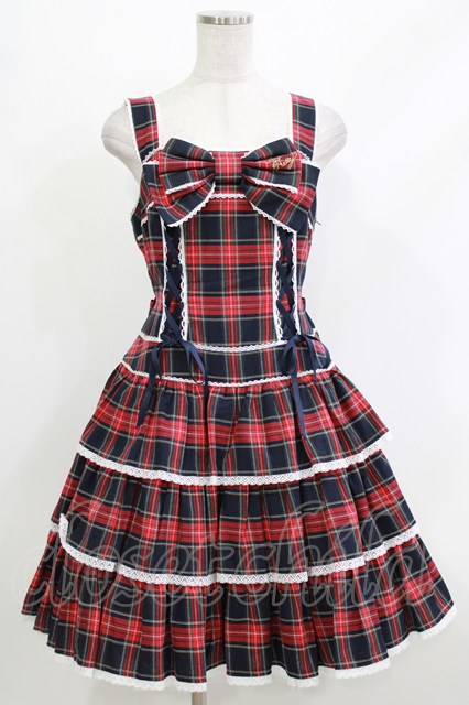 Angelic Pretty / Fancyタータンチェックジャンパースカート Free ネイビー H-26-04-08-003-AP-OP-NS-ZH [戻る]