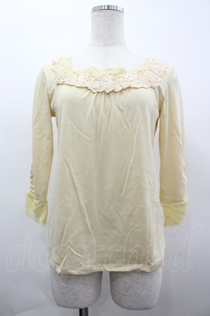 axes femme / ビジュー付きカットソー イエロー I-26-04-01-034-AX-TO-SA-ZI