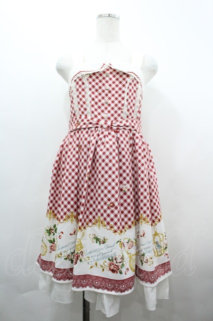 axes femme / ギンガム×花柄ワンピース 赤X白チェック I-26-04-01-098-AX-OP-SA-ZI