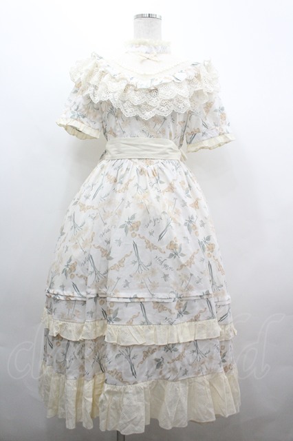 With Puji / フラワーリボンチェリー半袖ワンピース M アイボリー I-26-04-01-063-EL-OP-SA-ZI [戻る]