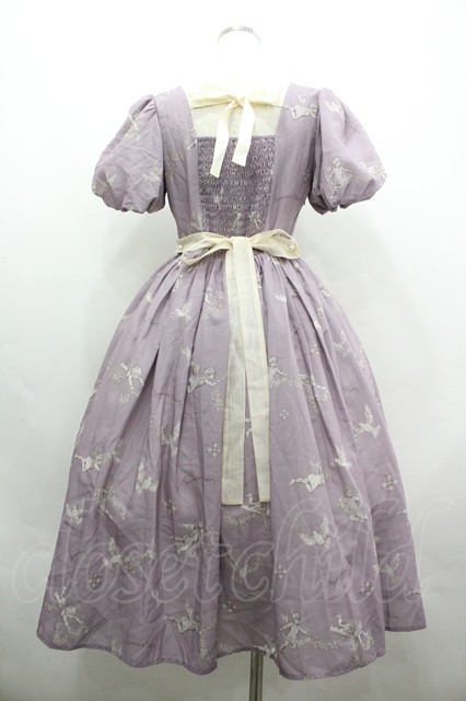 仲夏物語 / 天使柄半袖ワンピース ラベンダー I-26-04-01-064-EL-OP-SA-ZI