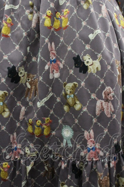 Melody BasKet / ちいさなぬいぐるみヨークワンピース ブラウンX白 I-26-04-01-071-LO-OP-SA-ZI [戻る]