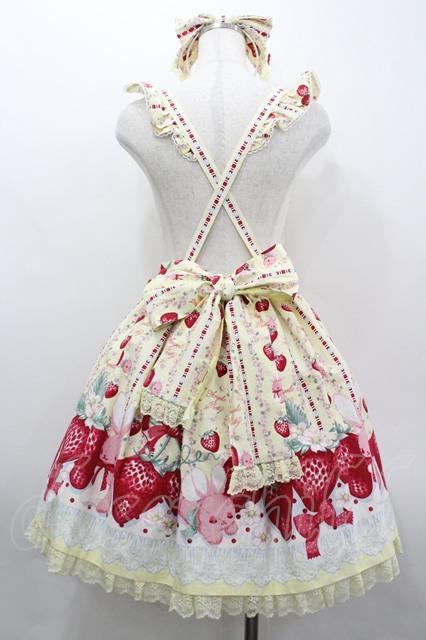 Angelic Pretty / Little Bunny Strawberryエプロン風スカートSet イエロー I-26-04-01-047-AP-OP-TE-ZI