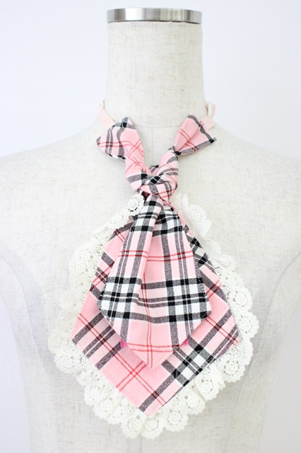 BABY,THE STARS SHINE BRIGHT / バーバリーチェック王冠刺繍ネクタイ ピンク T-26-04-04-031-BA-ZA-SA-ZT