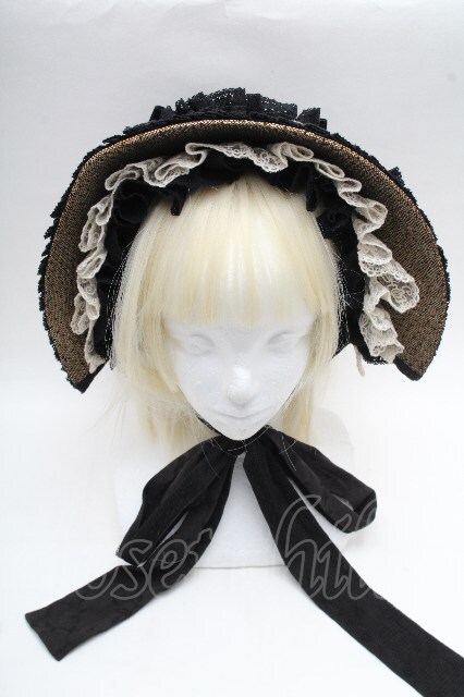 Hoshibako Works / 西洋人形魔法ボンネット 黒xベージュ S-26-04-02-008-LO-AC-AS-ZS