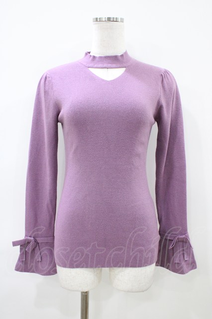 an another angelus / 袖口リボンチョーカーニットプルオーバー Free MAUVE H-26-04-06-1058-CA-TO-NS-ZH