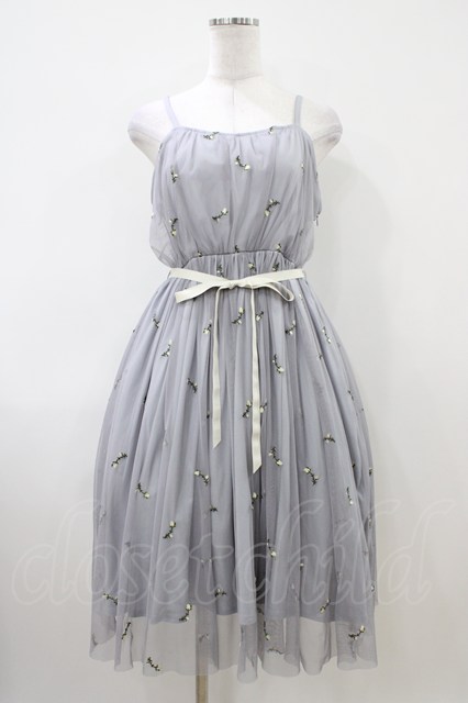 F i.n.t / ローズ総刺繍チュールワンピース Free SAX H-26-04-06-1032-0-OP-NS-ZH [戻る]