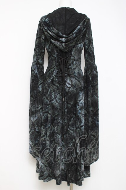 Ozz oneste / フロッキーフロントボタンワンピース グリーンx黒 Y-26-04-09-034-OO-OP-AS-ZY