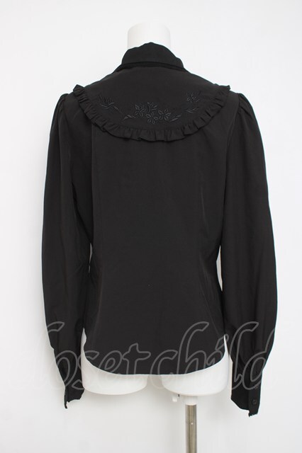 Hoshibako Works / ジャスミン刺繍フリルブラウス 黒 Y-26-04-09-036-LO-BL-SZ-ZY