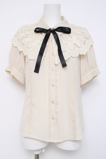 axes femme / レースケープリボン付き半袖ブラウス 生成り Y-26-04-09-051-AX-BL-SZ-ZY