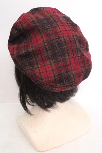 axes femme / ベルト使いチェック柄ベレー帽 ワイン O-26-04-04-1016-AX-AC-IG-OS