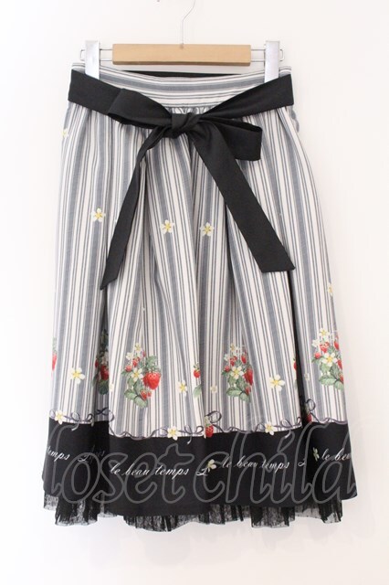 axes femme POETIQUE / ストロベリーストライプスカート M クロ O-26-04-04-024-AX-SK-IG-OS