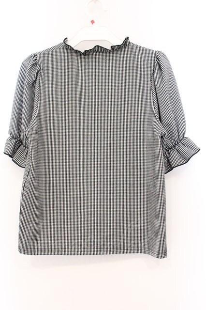 evelyn / 編み上げリブトップス クロギンガム O-26-04-04-090-LO-TO-OW-OS