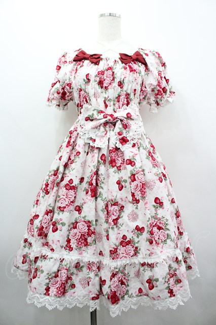 BABY,THE STARS SHINE BRIGHT / シュガーブーケ〜永遠の乙女の憧れ〜柄シャーリングワンピース 白 I-26-04-03-054-BA-OP-TE-ZI