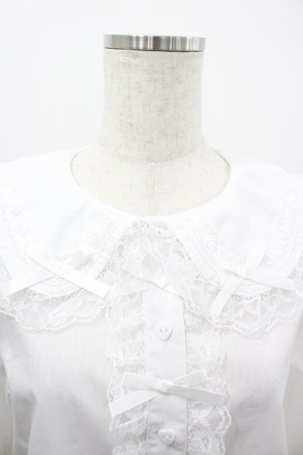 majoretty / 襟はしごリボンレースブラウス M ホワイト I-26-04-03-004-GO-BL-SA-ZI