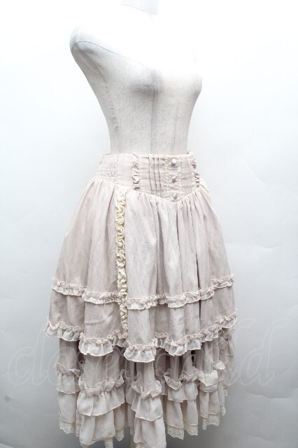 Hoshibako Works / オースティン ストライプ柄レースフリルスカート ベージュ S-26-04-04-080-LO-SK-HR-ZS
