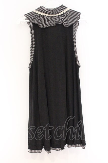 axes femme / フリルストライプ襟付きノースリーブトップス M クロ O-26-04-05-009-AX-TO-IG-OS
