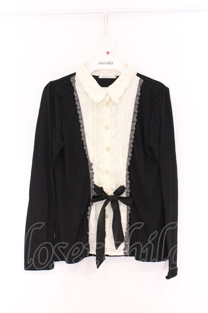 axes femme / ブラウスレイヤードカットソー M クロ×シロ O-26-04-05-011-AX-TO-IG-OS