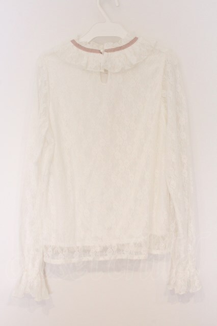 DearMyLove / フリルネックレーストップス M シロ×ピンクリボン O-26-04-05-053-EL-TO-OW-OS