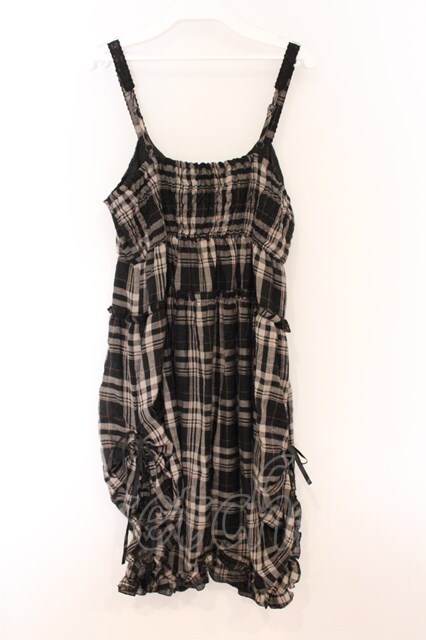 axes femme / チェックドロストキャミワンピース クロ×ベージュ O-26-04-05-030-AX-OP-IG-OS [戻る]