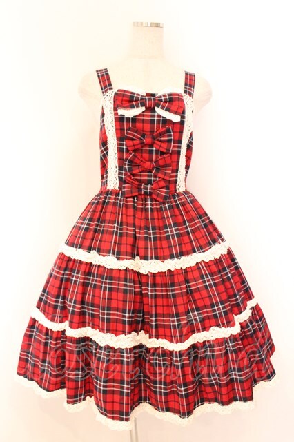 axes femme kawaii / タータンチェックジャンスカ M アカ O-26-04-05-081-AX-OP-OW-OS
