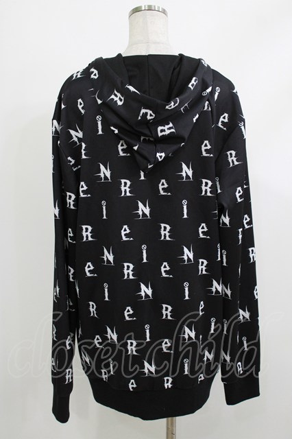 NieR Clothing / 総柄ZIPパーカー 黒×ロゴ H-26-04-10-047-PU-TO-KB-ZH