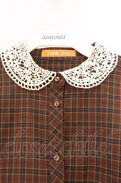 Fi.n.t / レース衿チェックシャツ ブラウン O-26-04-06-028-CA-BL-IG-OS