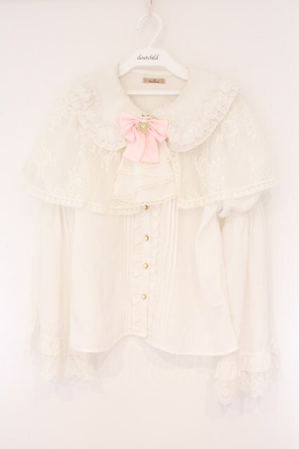Amavel / Secret Macaronレースケープブラウス F シロxピンク O-26-04-06-004-CA-BL-YM-OS
