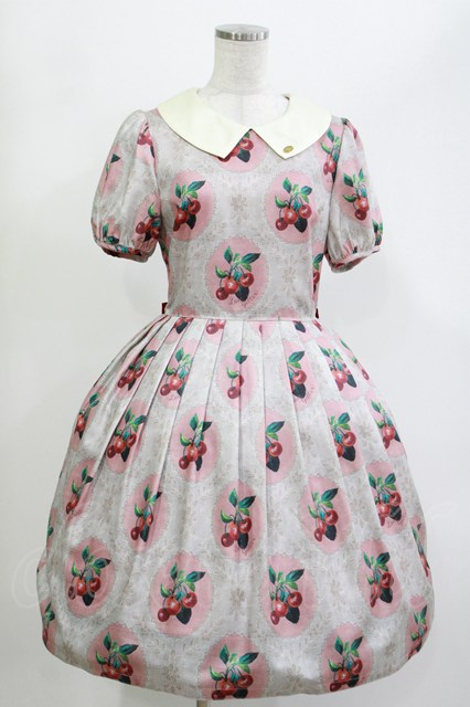 Leur Getter / Cherry Lace袖付ワンピース M ピンク H-26-04-11-1002-LU-OP-KB-ZH