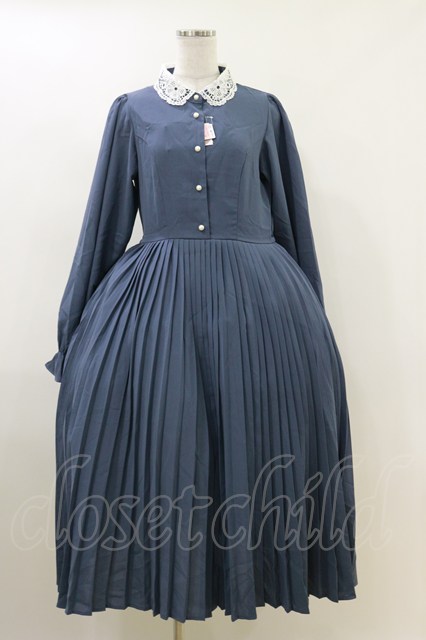m petit by misako / AM*レースエリプリーツワンピース L ブルー H-26-04-11-040-LO-OP-NS-ZH