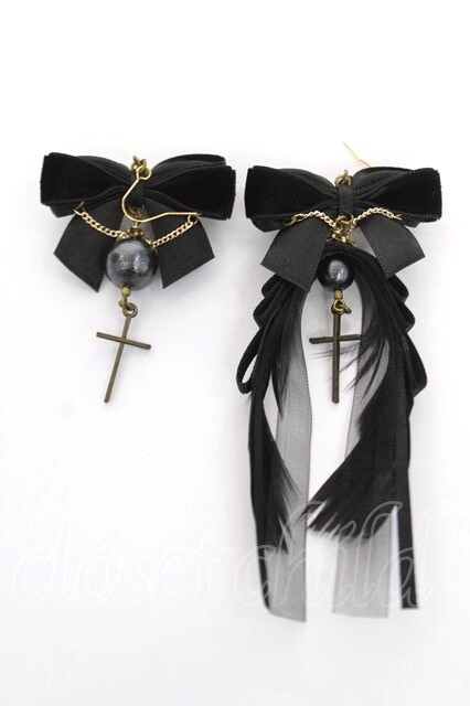 mayla classic / リボン×クロスピアス 黒 Y-26-04-11-002-LO-AC-SZ-ZY
