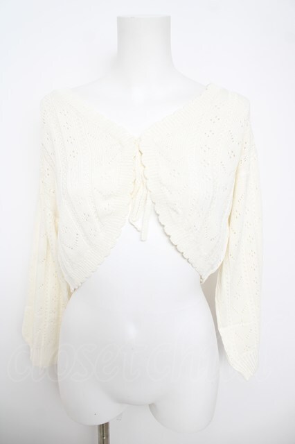 F i.n.t / ストライプ透かし編みニットボレロ F オフホワイト Y-26-04-11-033-CA-TO-SZ-ZY [戻る]