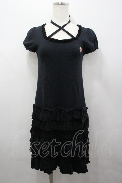 BABY,THE STARS SHINE BRIGHT / プリンセスドロップフリルカットワンピース 黒 I-26-04-06-037-BA-OP-SA-ZI
